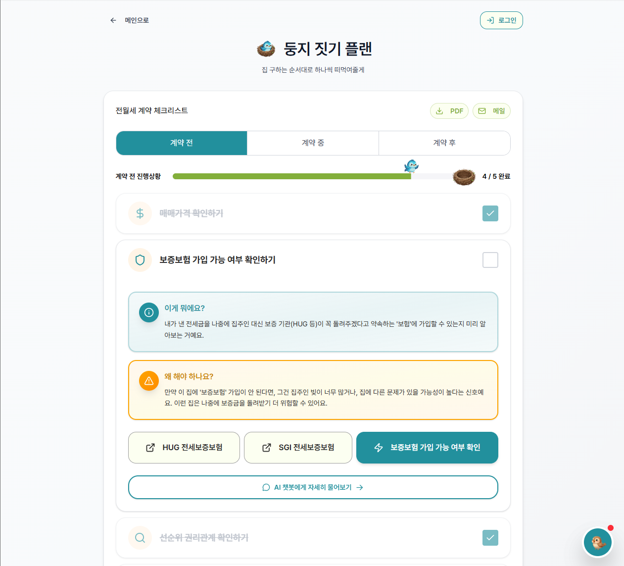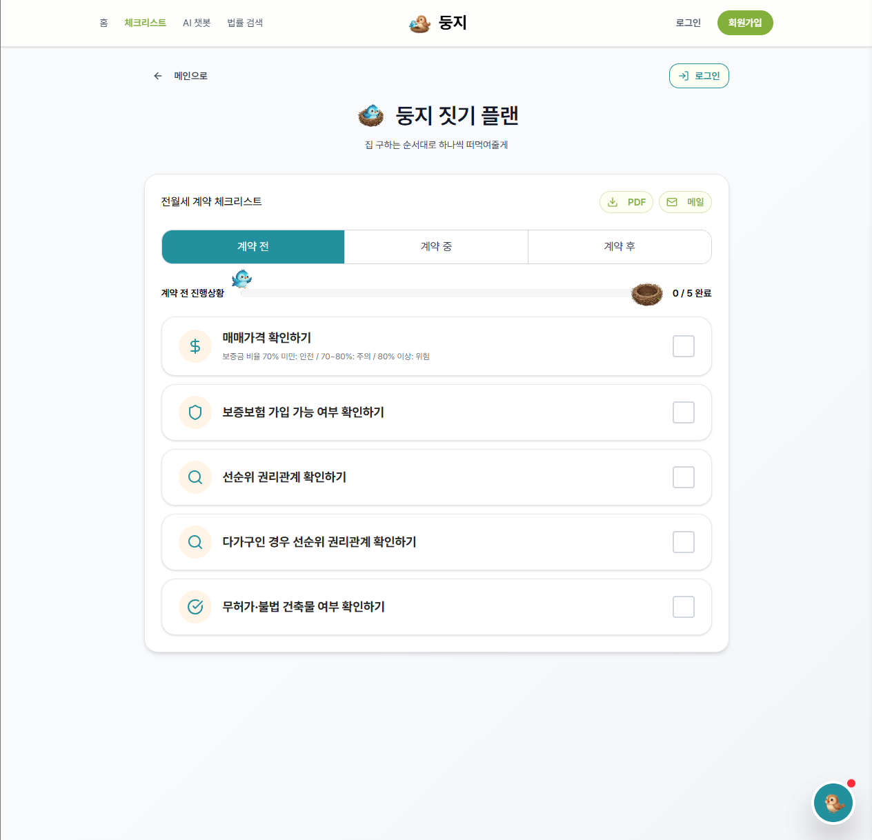 - 체크리스트 → 둥지 짓기 플랜