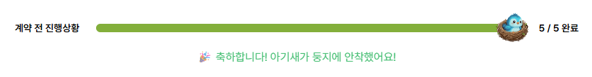 - 진행상황 progress bar를 새가 둥지에 안착하는 모습으로 형상화