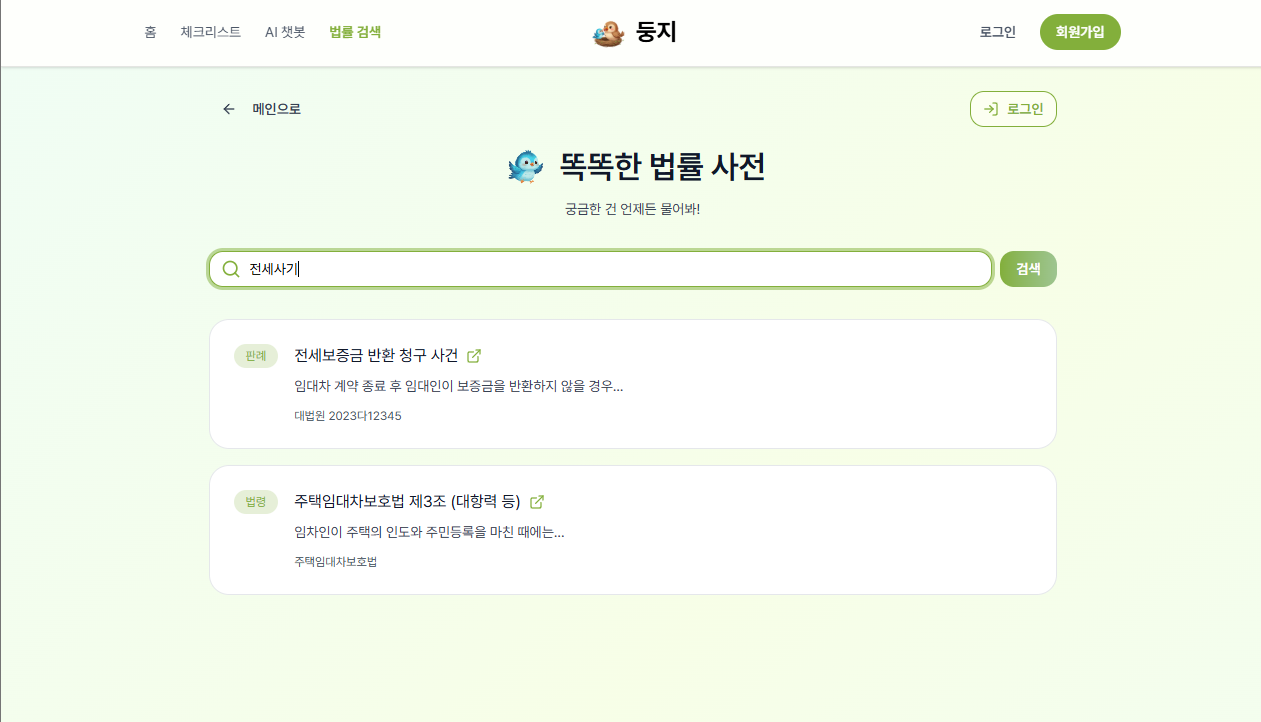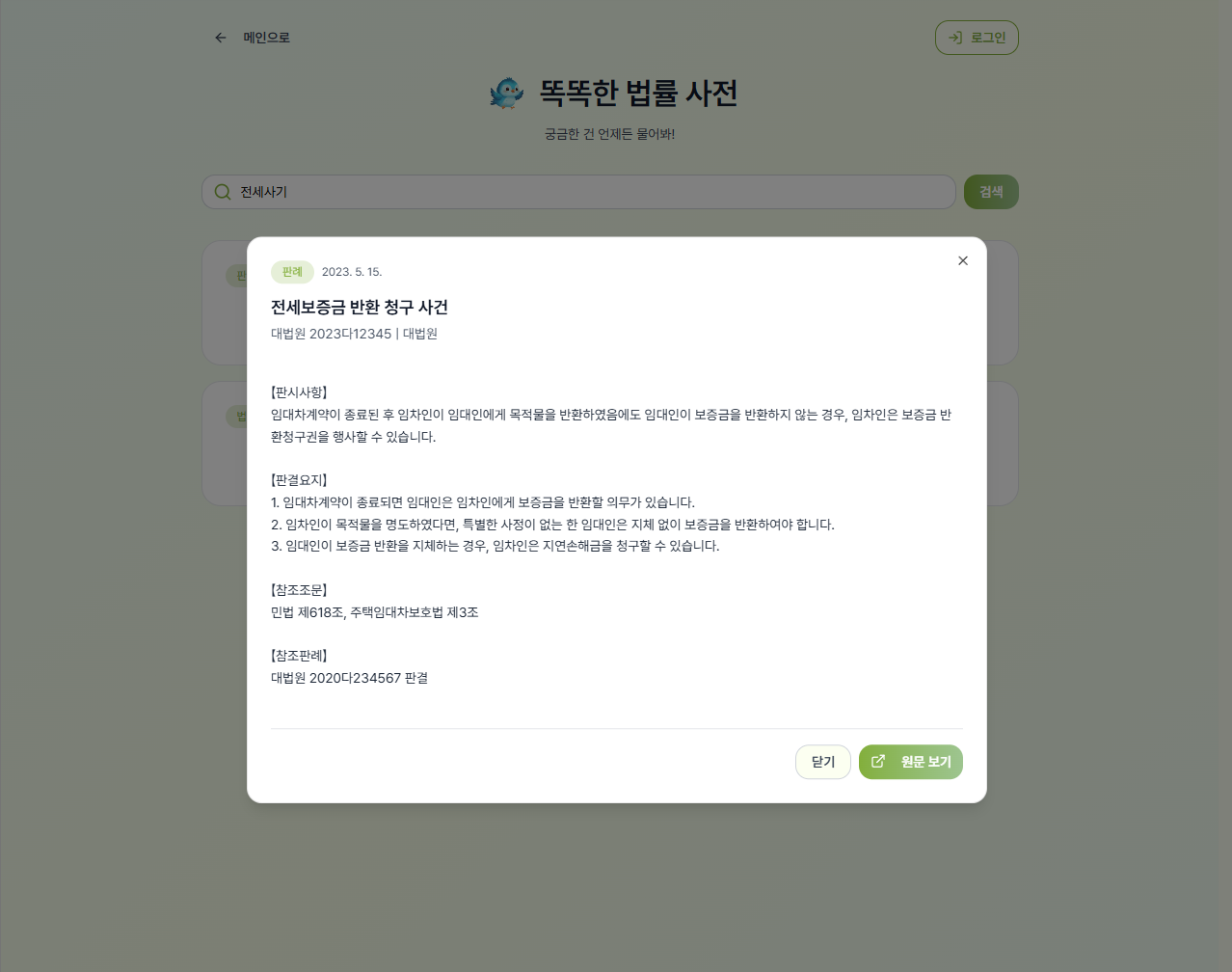 - 판례/법률 검색 → 똑똑한 법률 사전