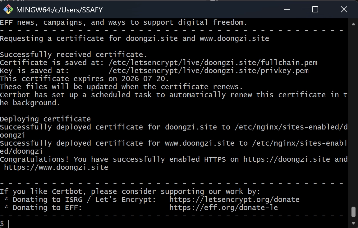 sudo certbot --nginx -d doongzi.site -d www.doongzi.site