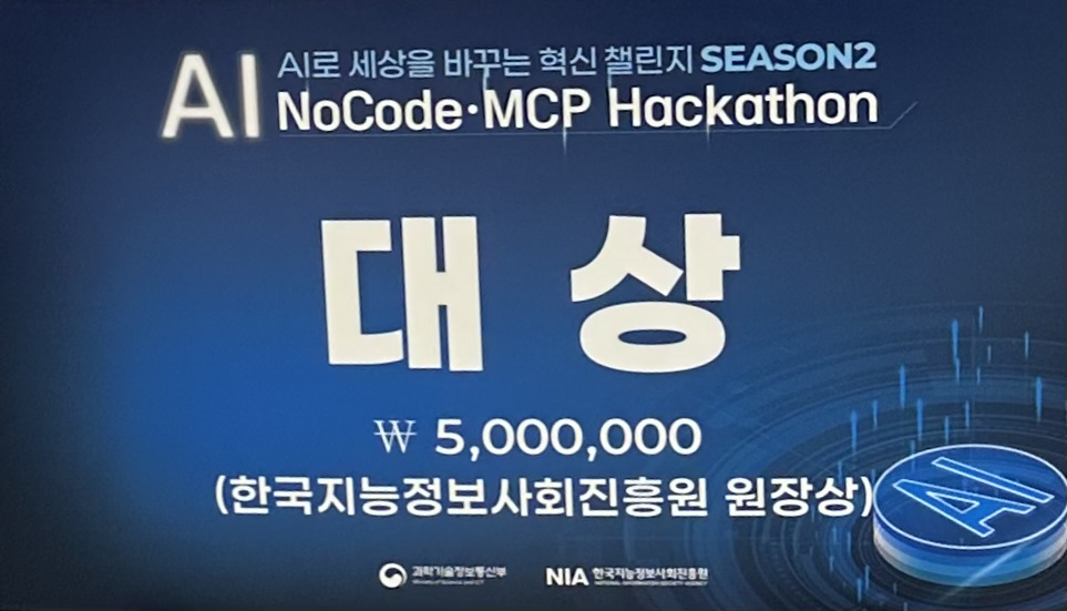 2박 3일 동안 통합 4시간 잤나?.. 이렇게 하루 종일 코딩만 했는데도 힘들기보다는 팀원들과 함께 이루어나가는 과정이 즐거웠고, 완성하지 못한 기능에 대해 아쉬움이 남았다. 좋은 팀원들 덕분에 좋은 경험하고 “대상”이라는 좋은 결과도 얻고, 많이 배울 수 있었다!