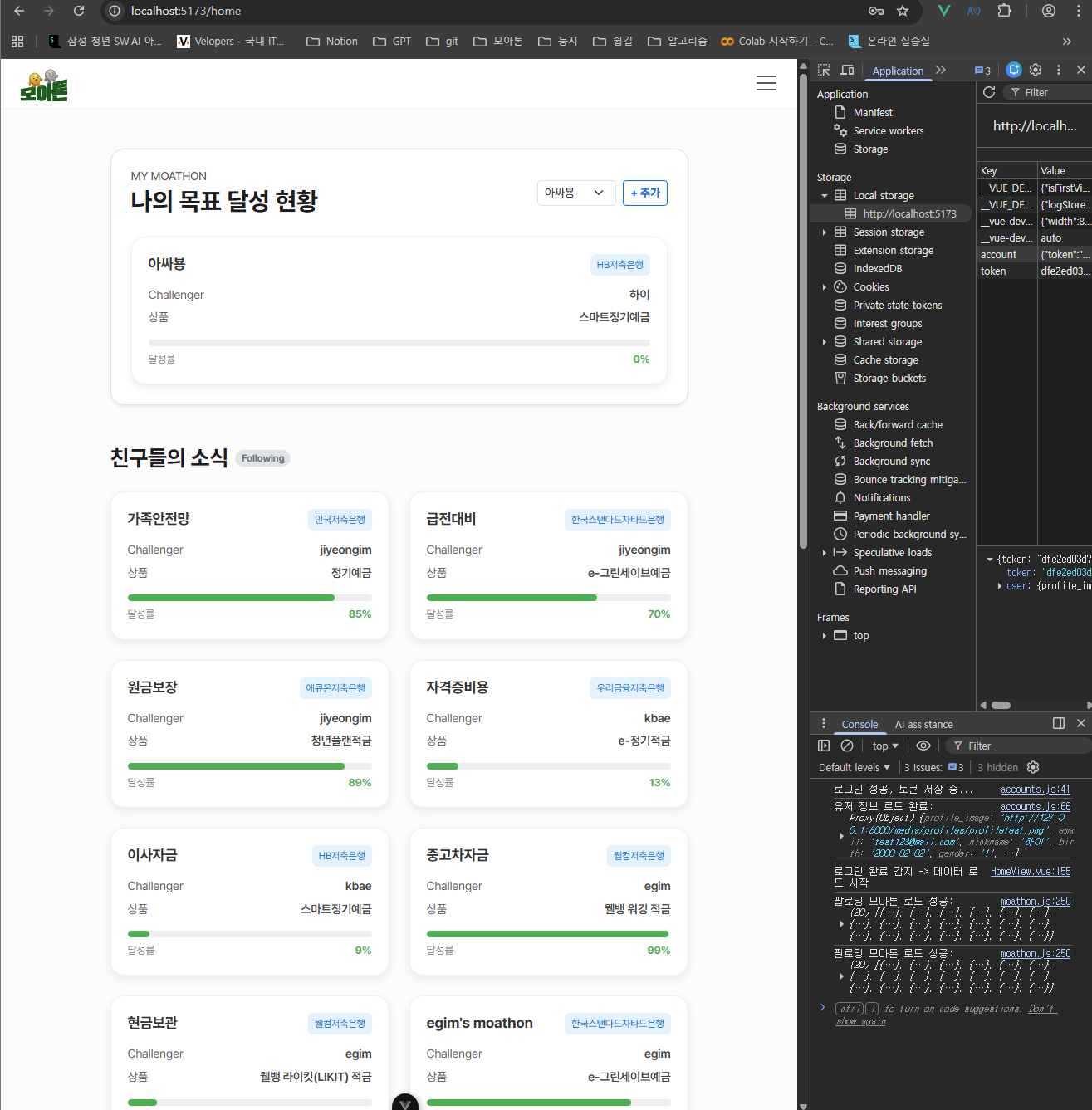 /home)로 자동 이동되었으나, ‘팔로우한 친구들의 모아톤’ 목록이 비어있는 현상이 발생했다. 콘솔을 확인해 보니/moathon/following/요청에 대해401 Unauthorized에러가 떠 있었으며, 페이지를 새로고침(F5) 해야만 정상적으로 데이터가 로드되었다.- 재현 단계