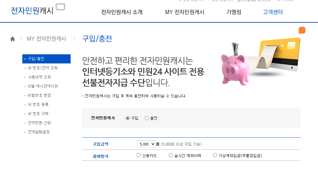 “선불전자지급수단은 전자민원캐시를 사용합니다.”